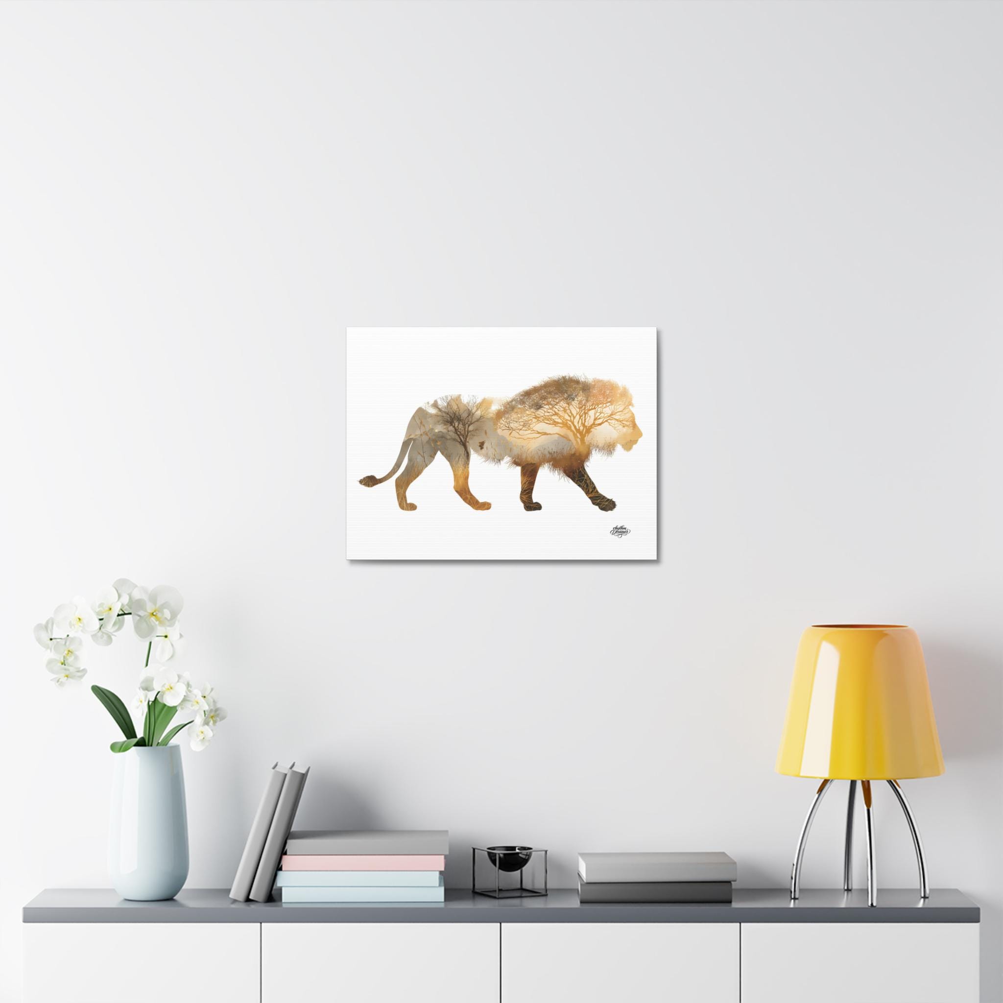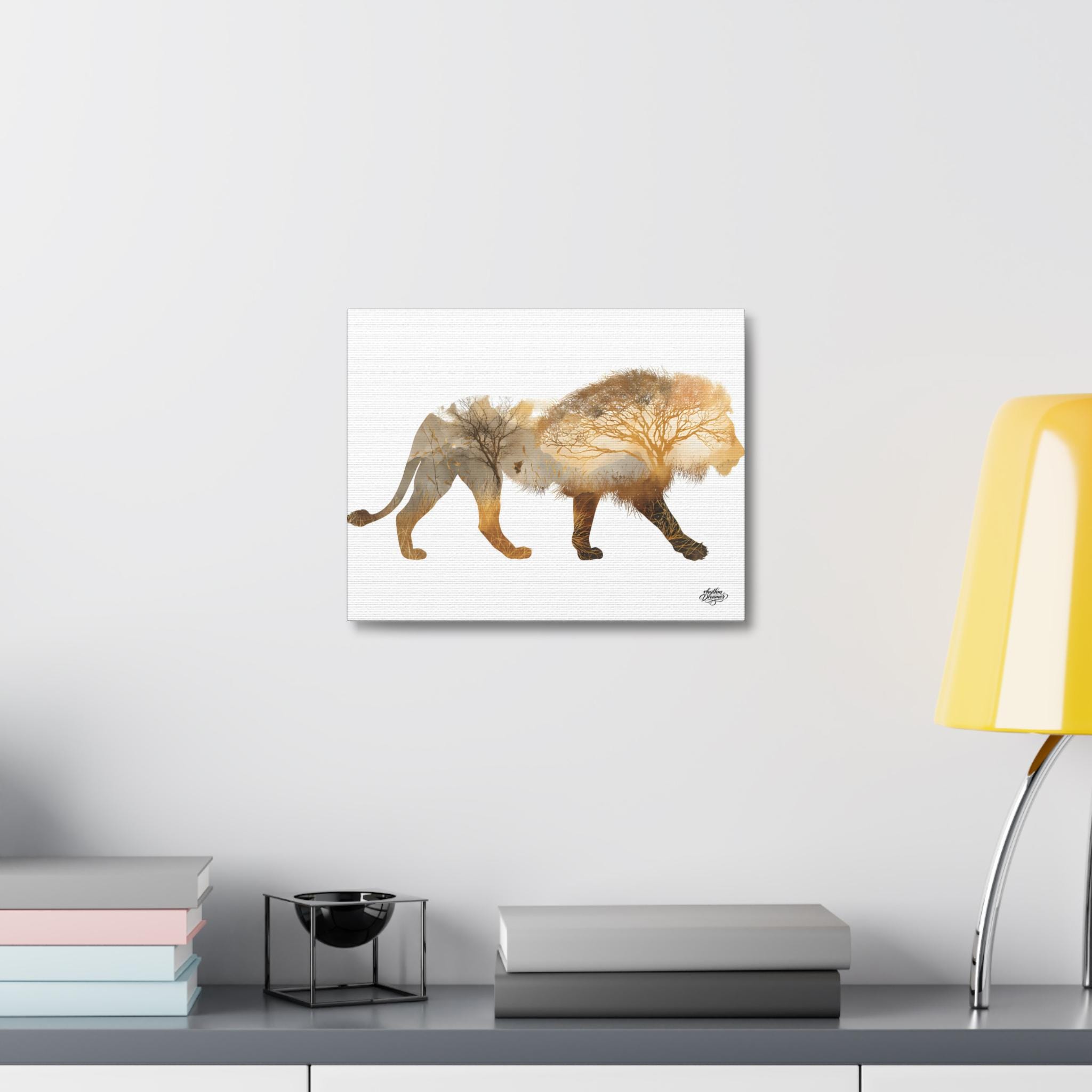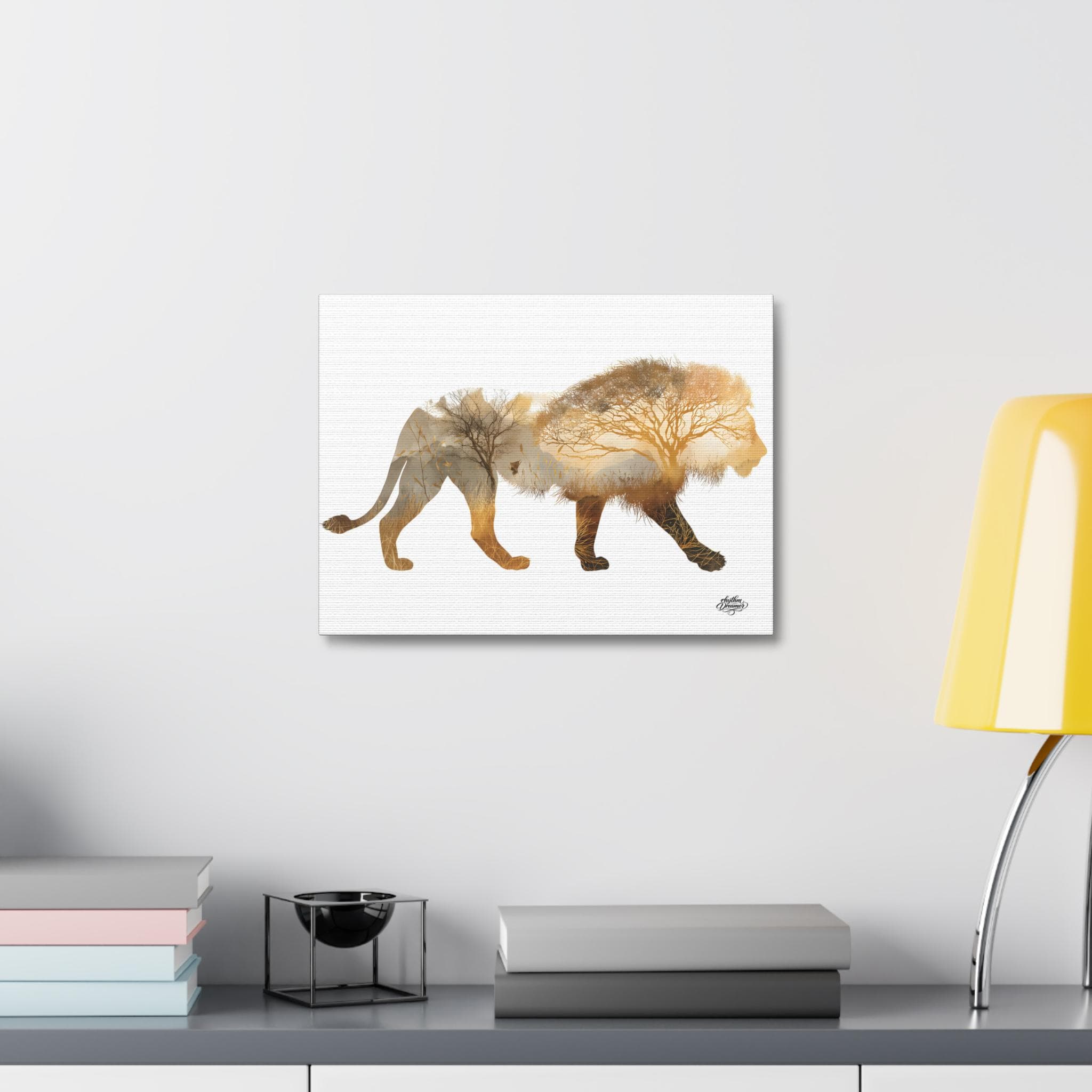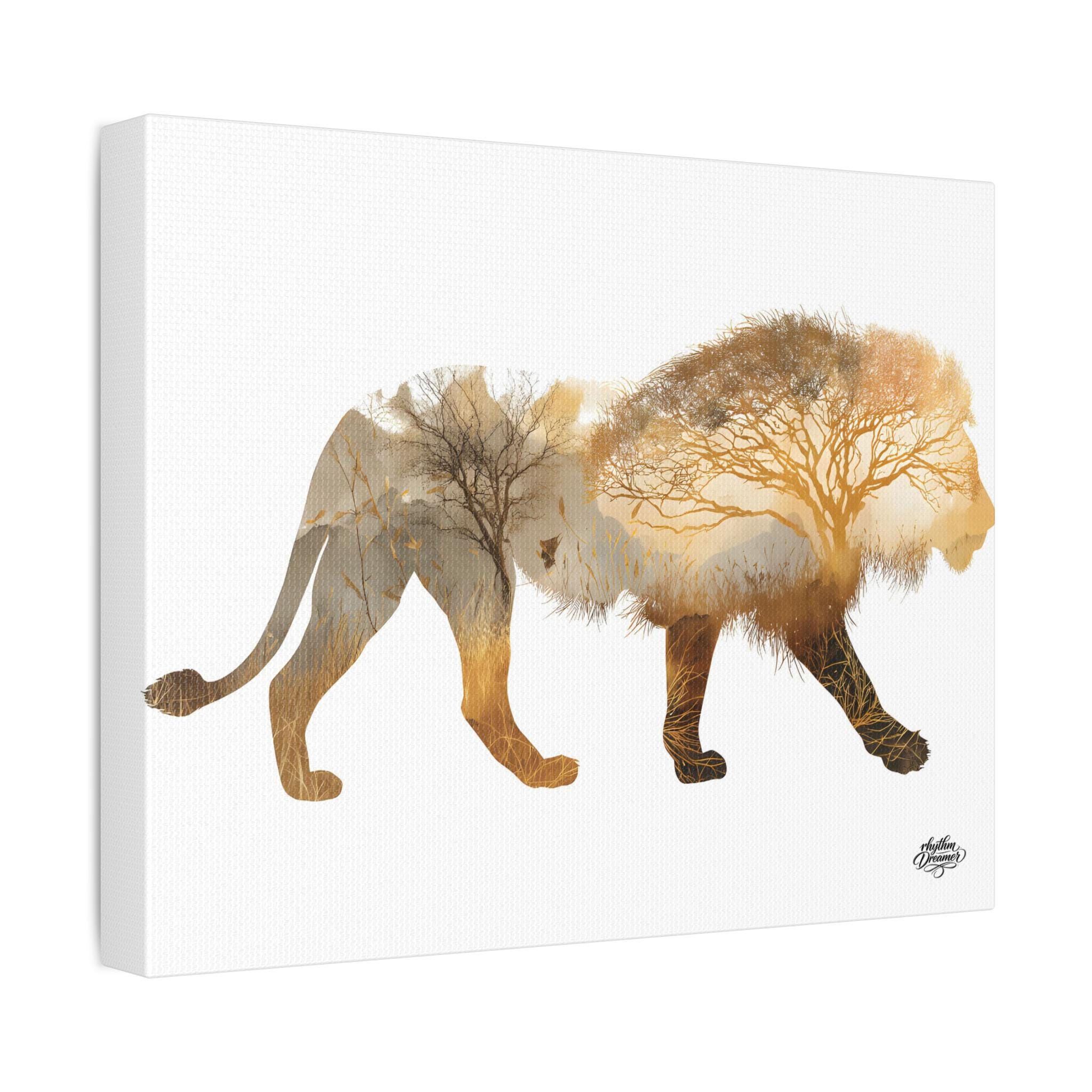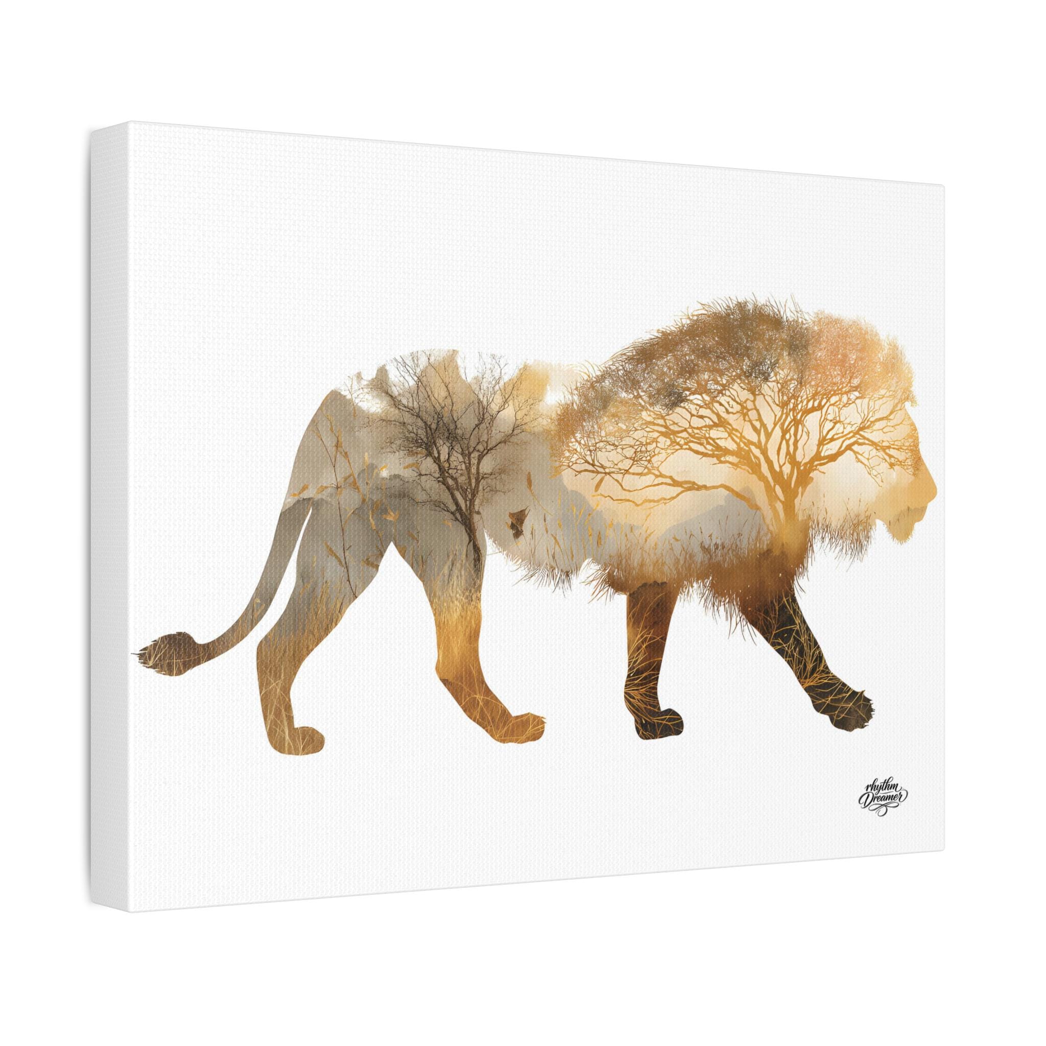 Lion Silhouette with Savanna Landscape – Minimalist Nature Canvas Wall Art available in 28 × 35 cm / 30 × 40 cm / 45 × 61 cm