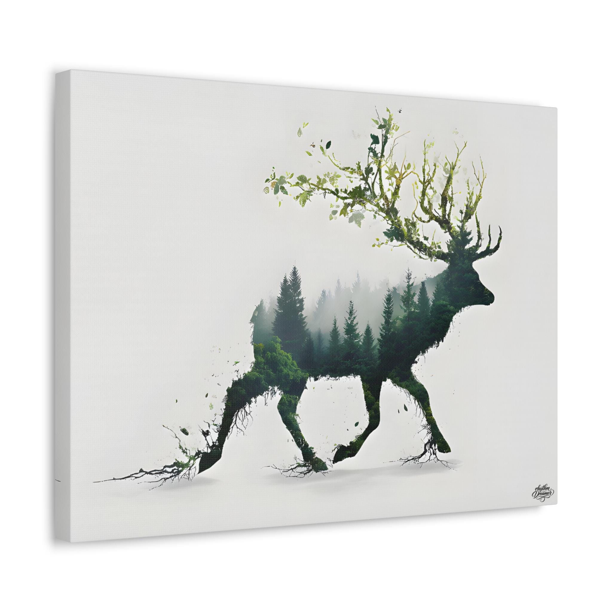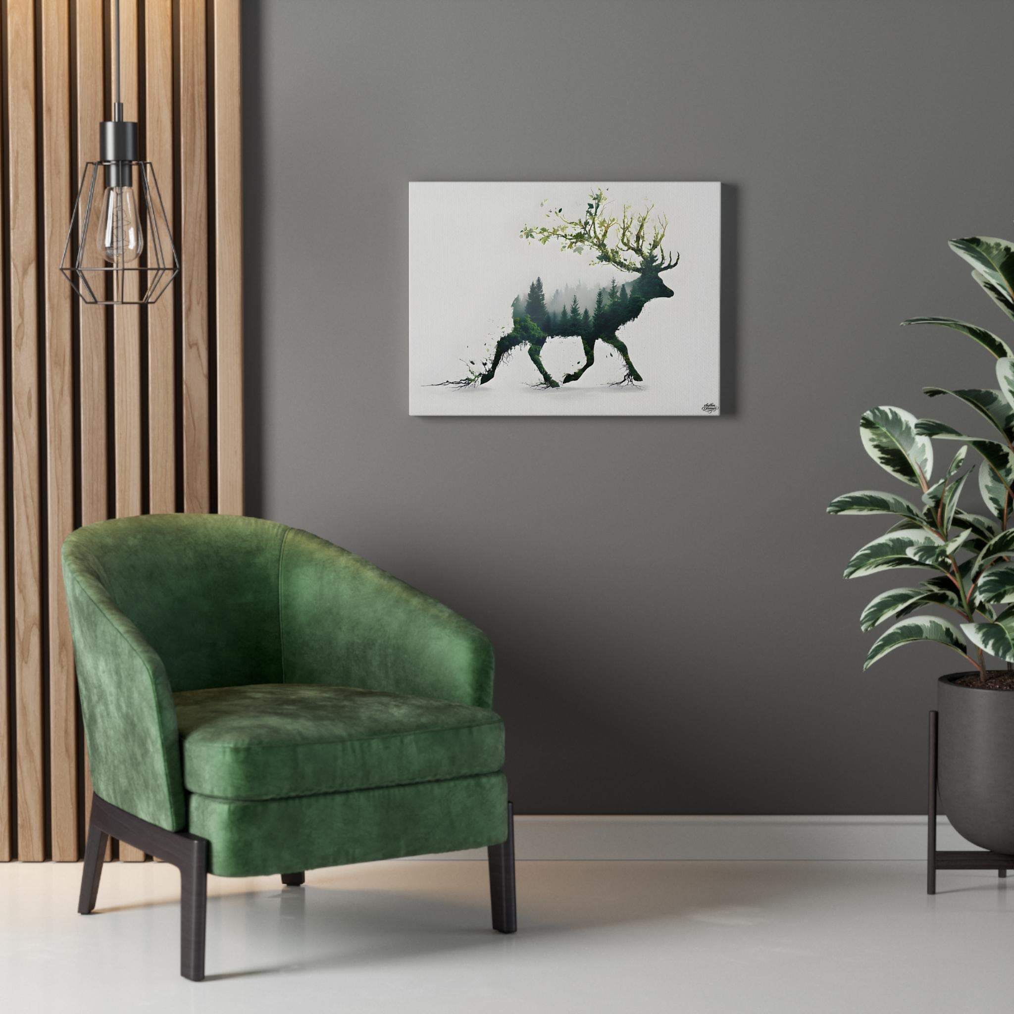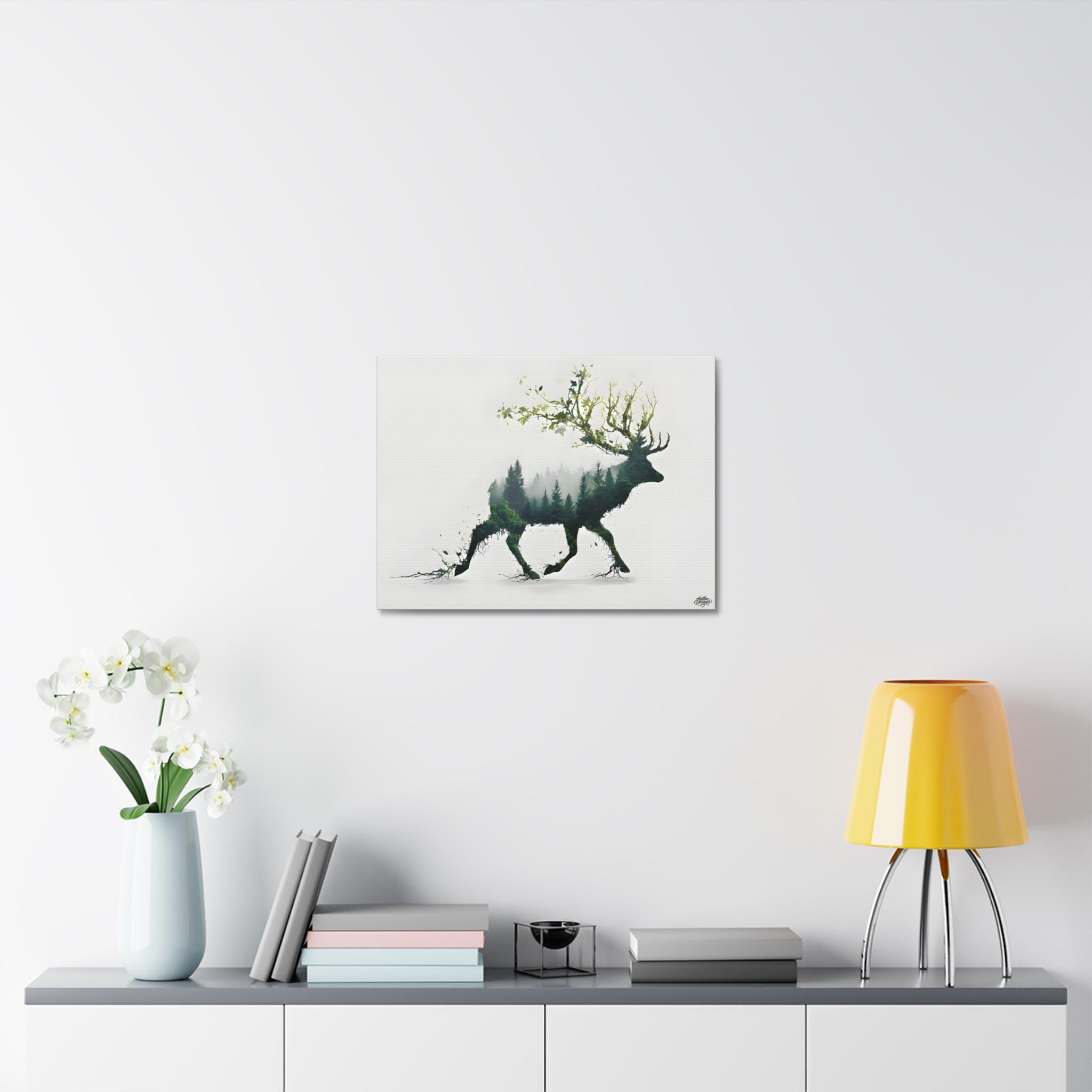 Deer Silhouette with Conifer Forest – Minimalist Nature Canvas Wall Art | Forest Decor 45 × 61 cm