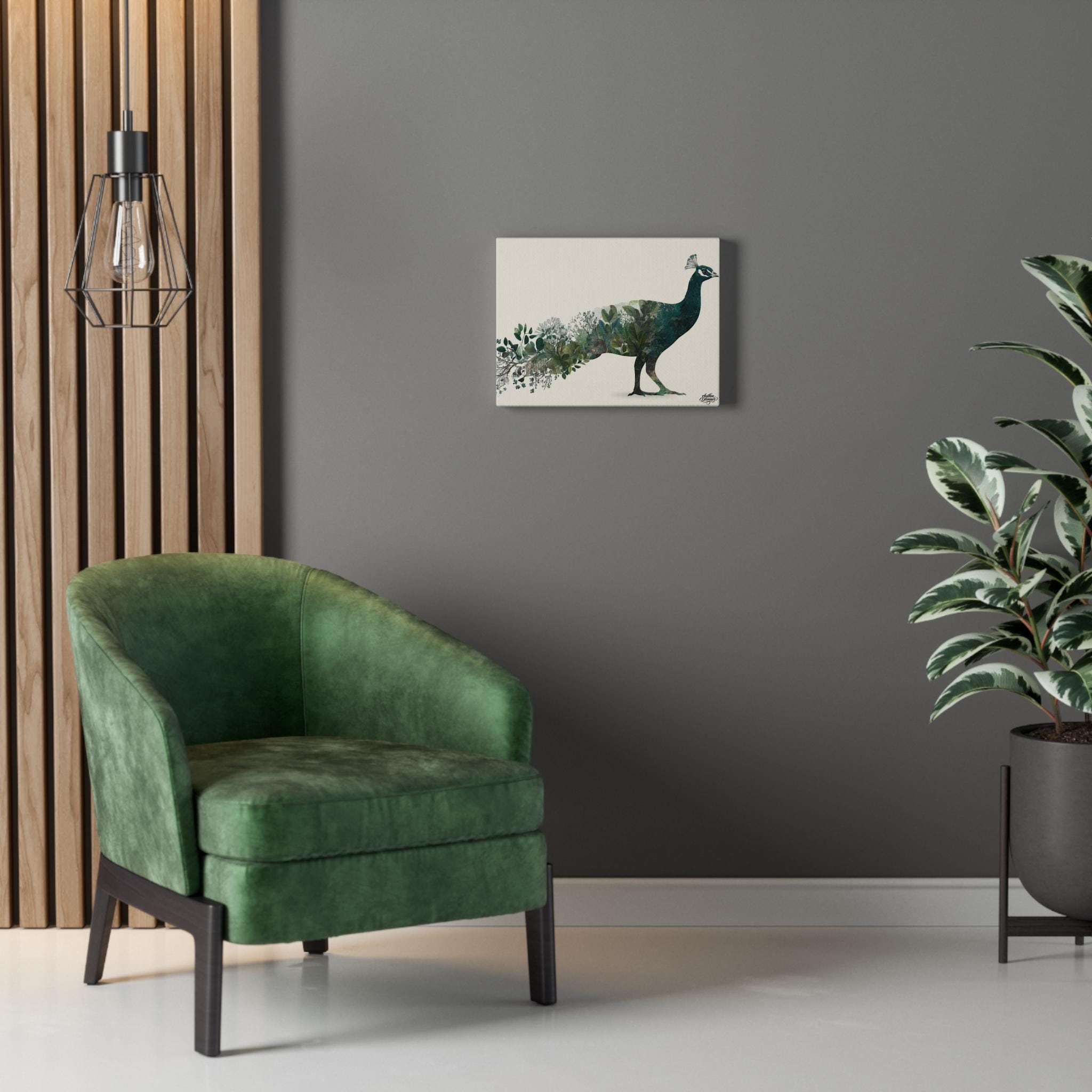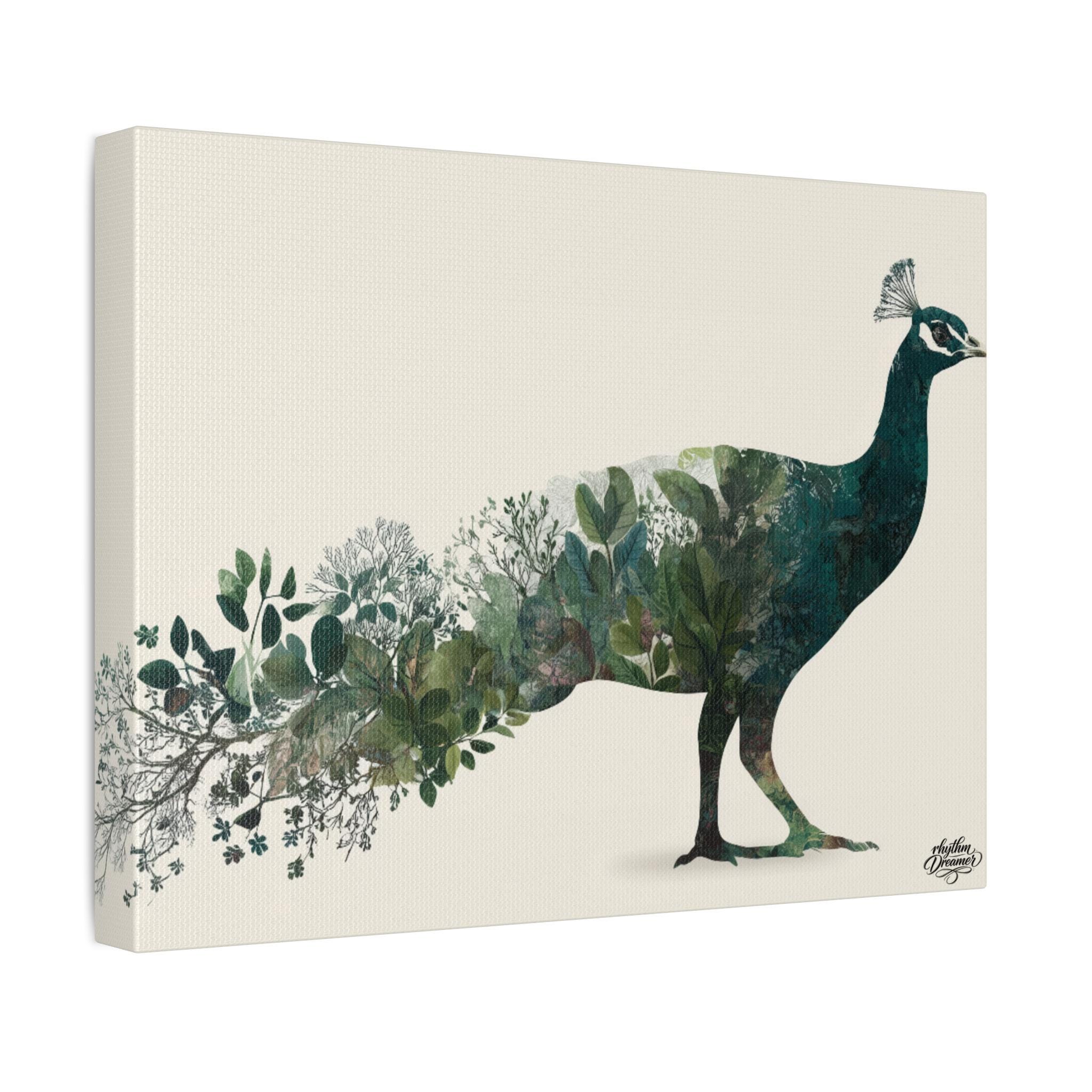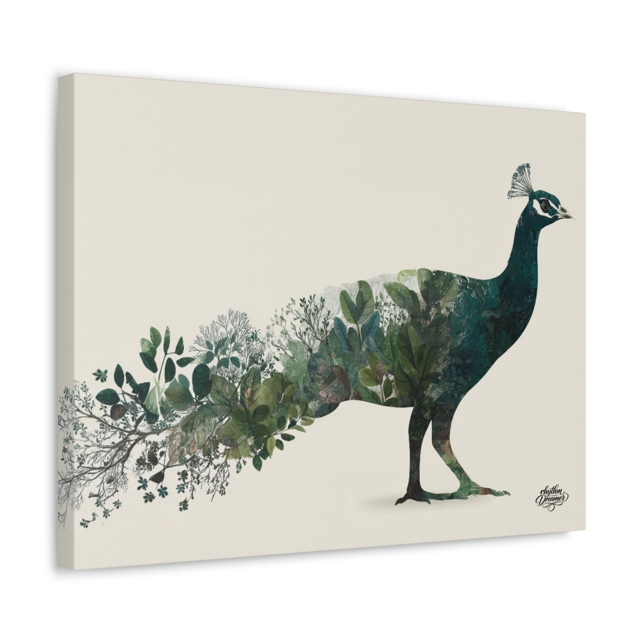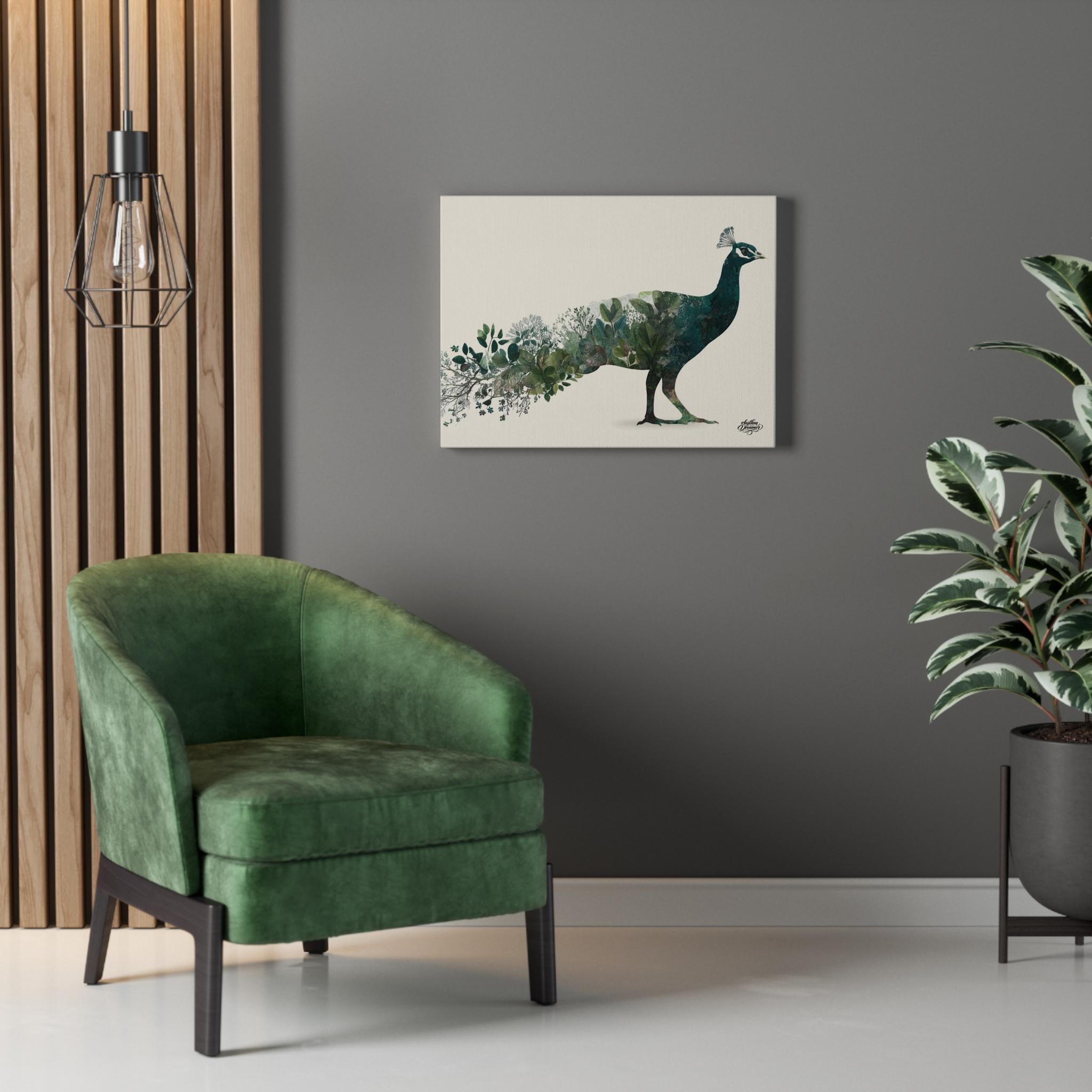 Peacock Silhouette with Botanical Foliage – Minimalist Nature Canvas Wall Art | Peacock Wall Decor 30 cm × 40 cm / 45 cm × 61 cm
