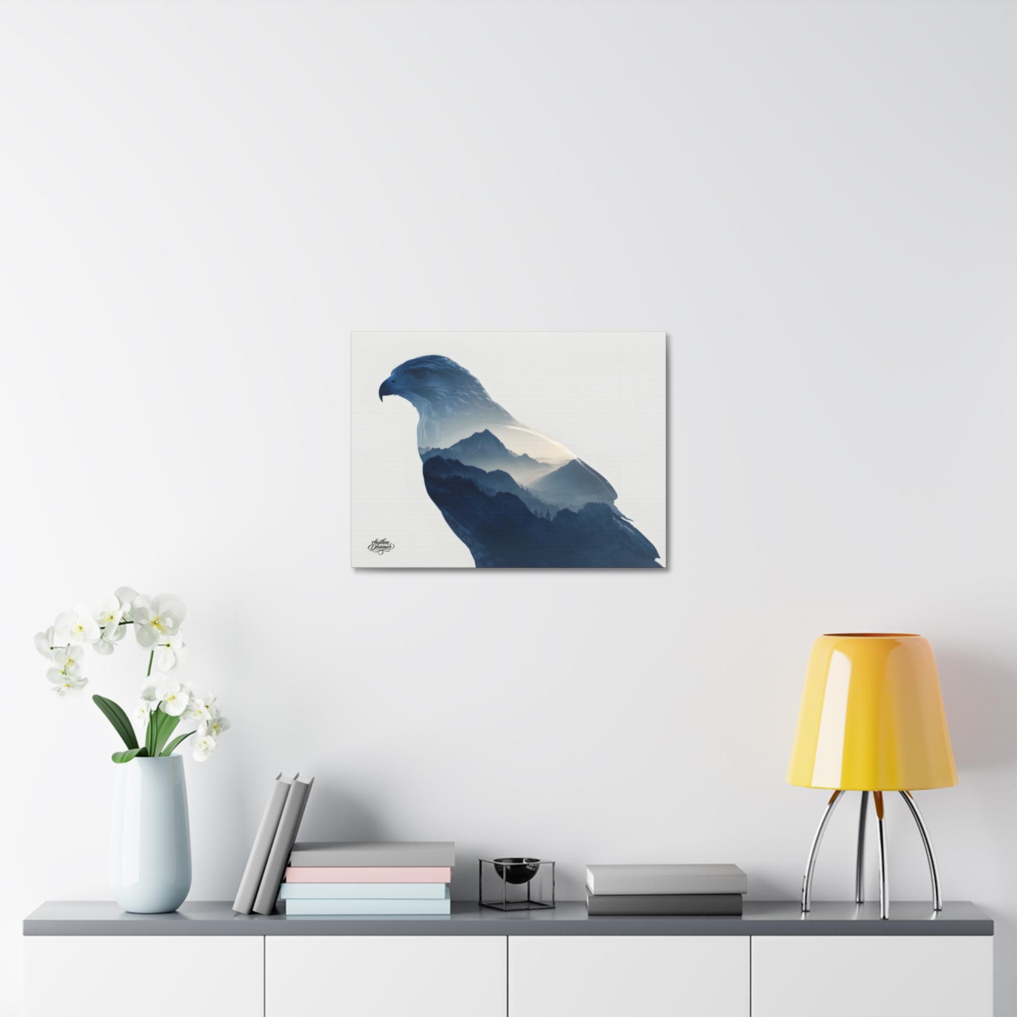 Falcon Silhouette with Mountain Landscape – Minimalist Nature Canvas Wall Art | Wildlife Wall Decor 30 cm × 40 cm / 45 cm × 61 cm