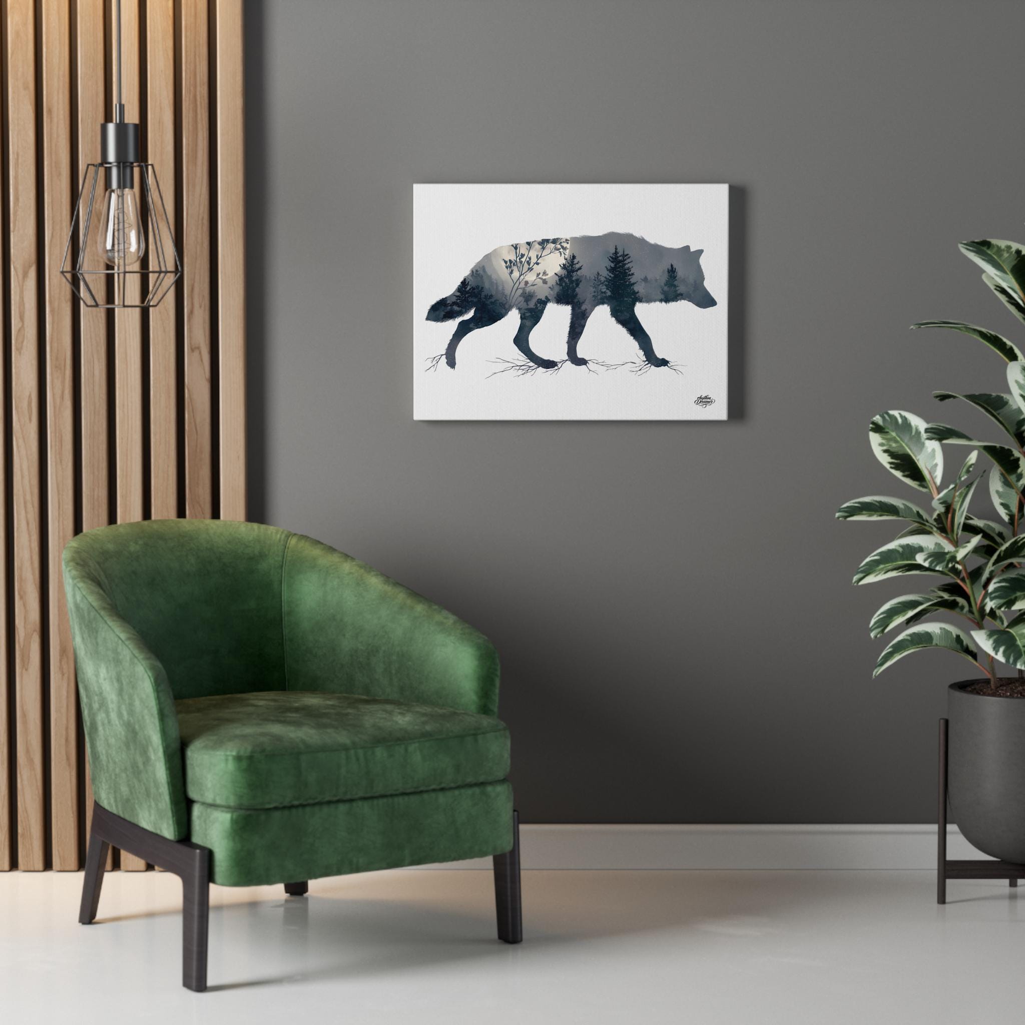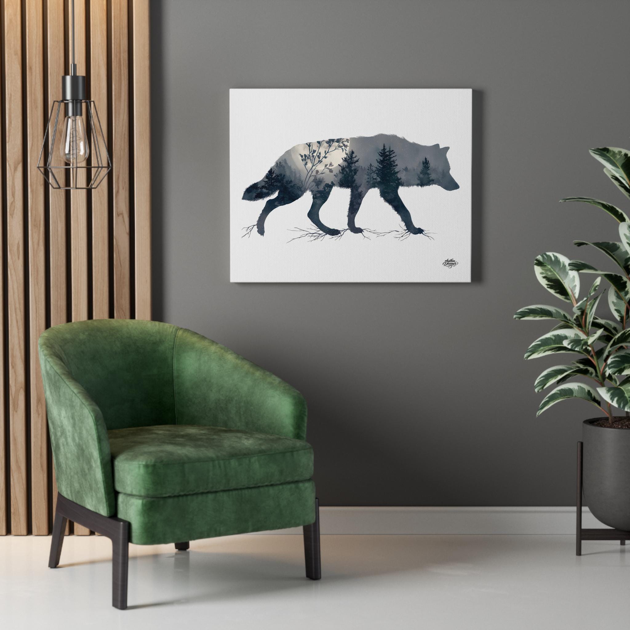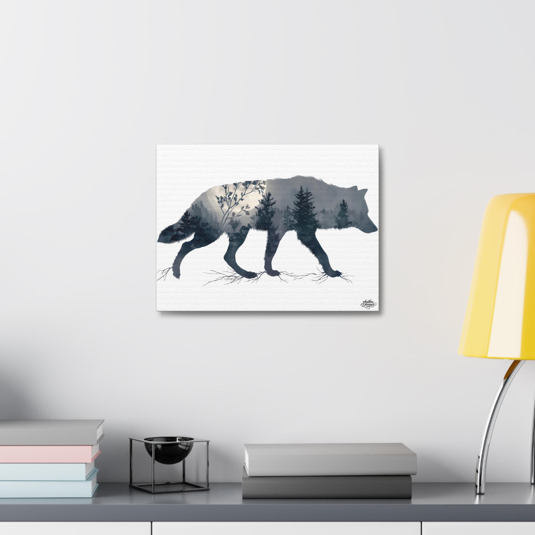 Wolf Silhouette with Misty Forest – Minimalist Nature Canvas Wall Art | Wildlife Wall Decor 30 cm × 40 cm / 45 cm × 61 cm / 61 cm × 76 cm