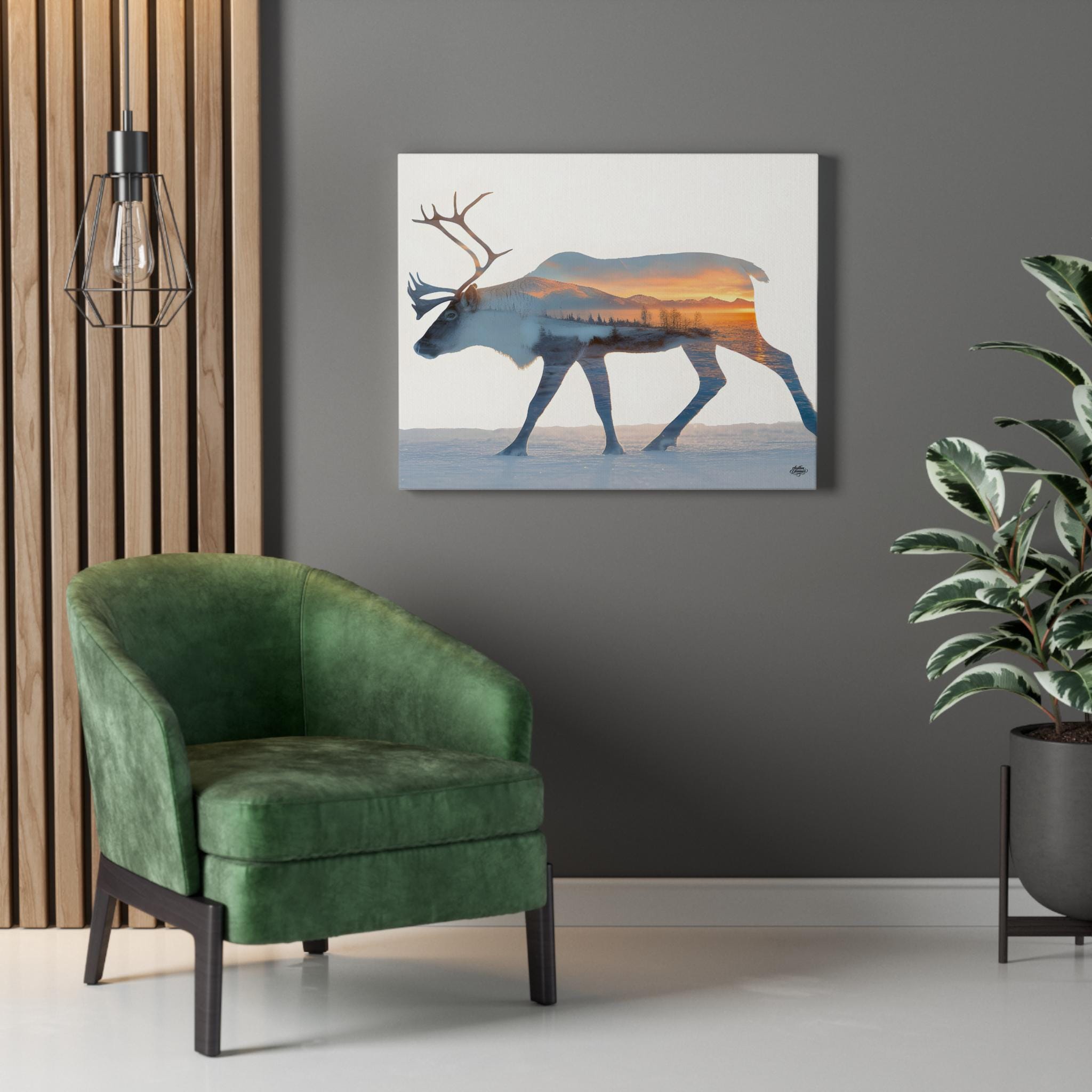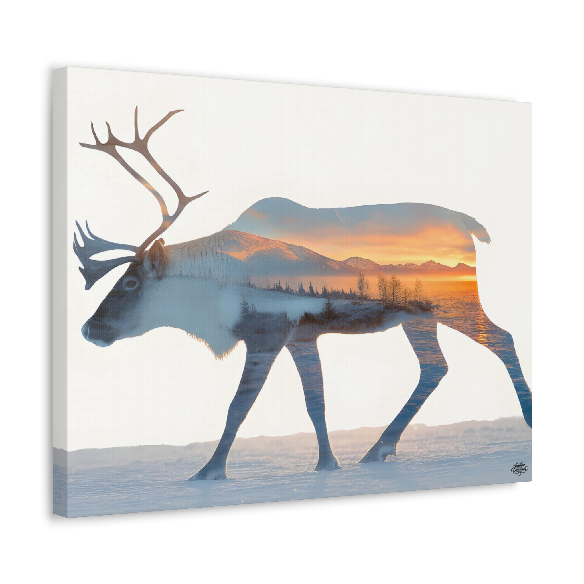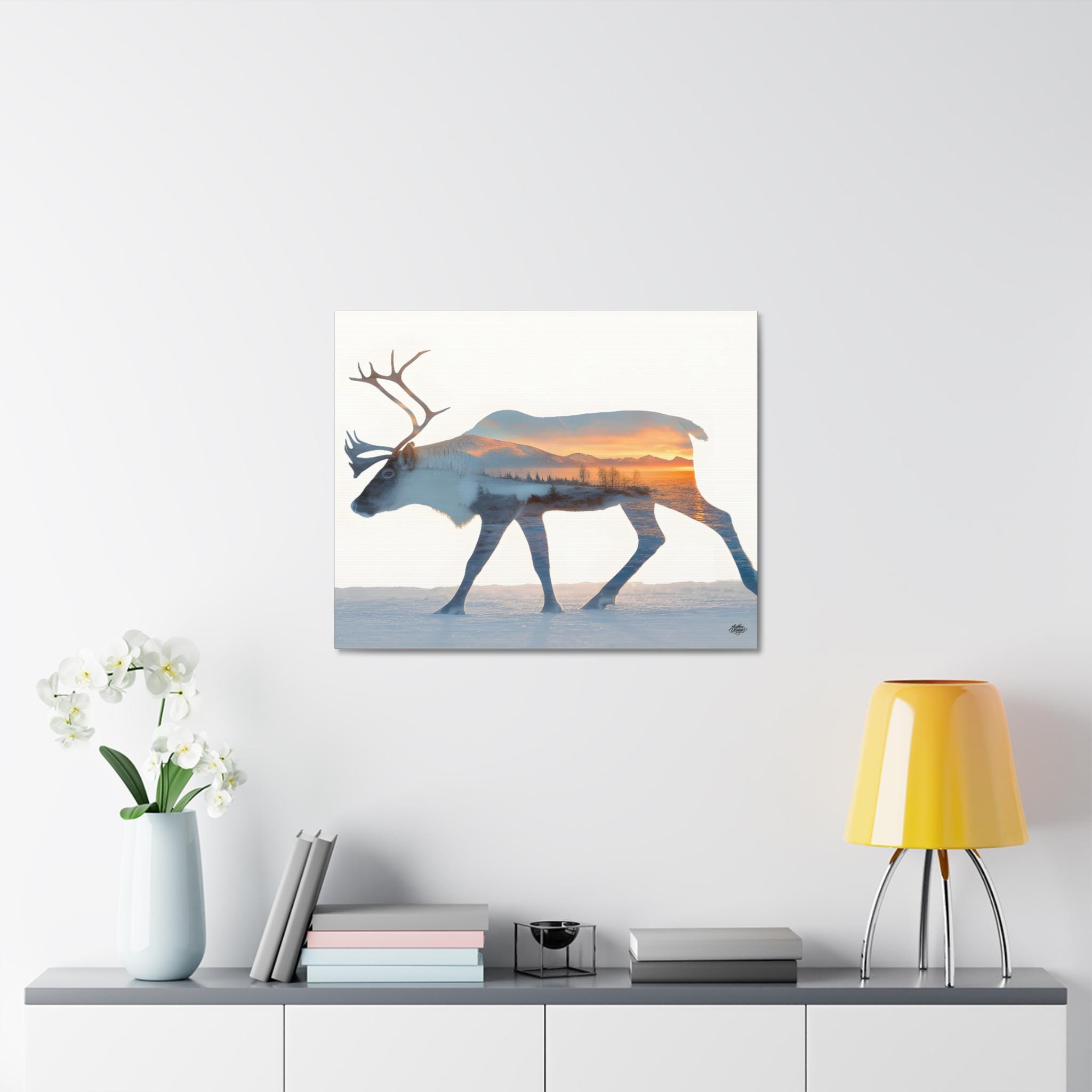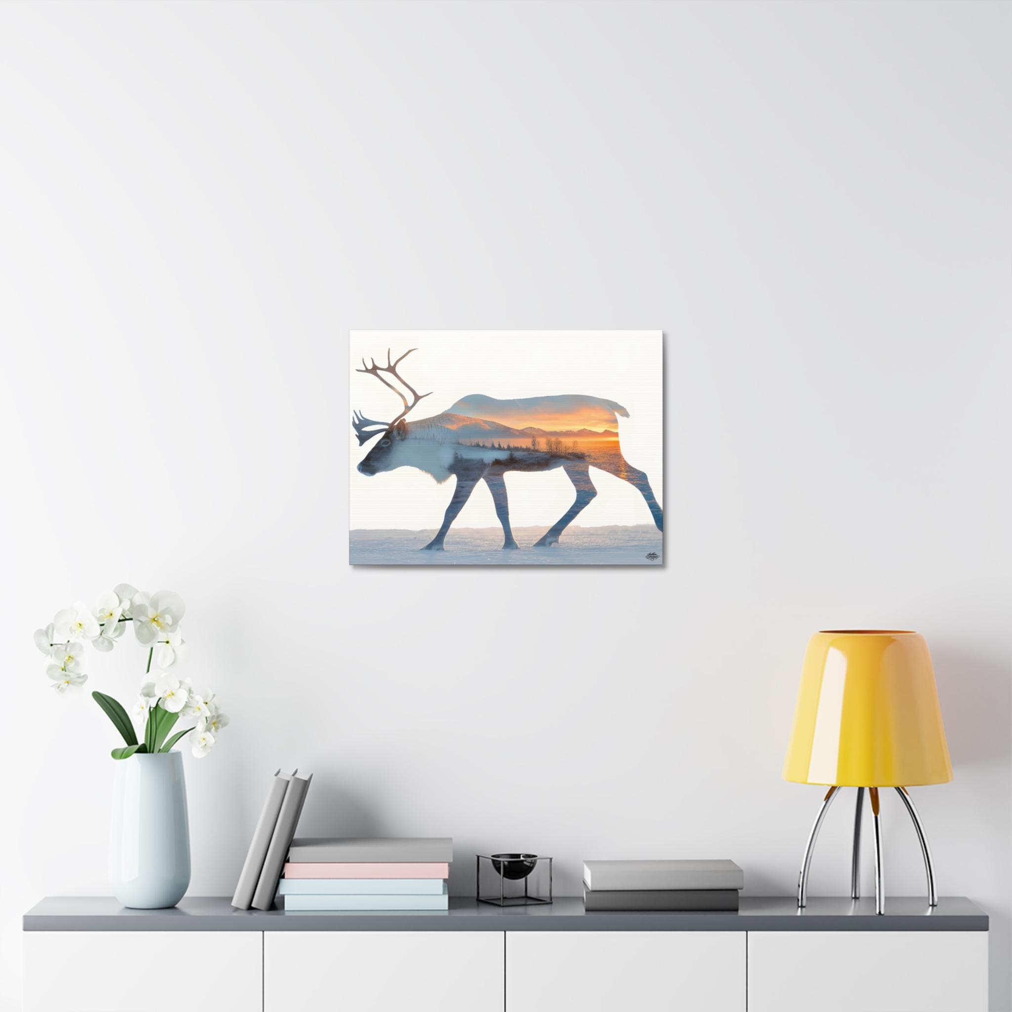 Caribou silhouette wall art with winter landscape – Minimalist nordic nature canvas, mountain decor 45 cm × 61 cm / 61 cm × 76 cm